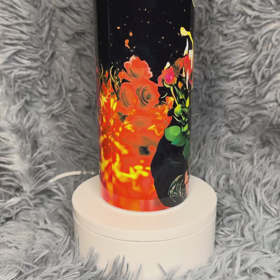 This double-wall, stainless steel tumbler keeps your drinks cold for hours and warm when you need it. Each tumbler is custom-designed by hand, made to order, and finished with a smooth, durable coating that won’t fade or peel. Perfect for iced coffee lovers, hot cocoa drinkers, and anyone who wants their cup to match their vibe.